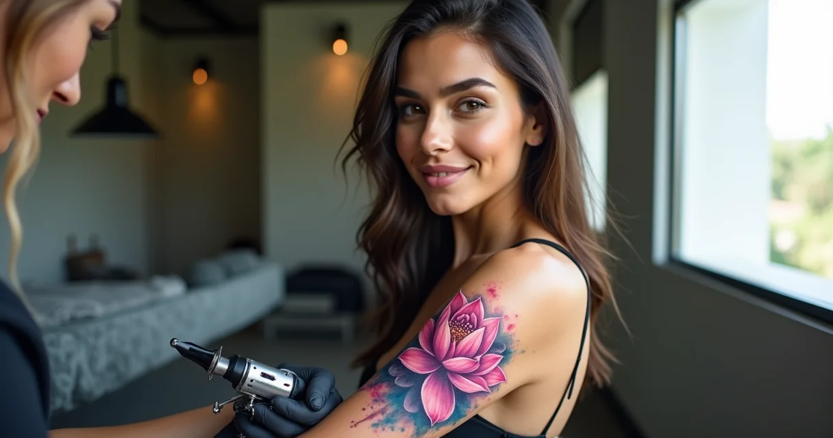 Descubra como fazer tatuagem flor de lotus aquarela, a técnica que transforma sua pele em uma pintura viva com cores que parecem dançar.