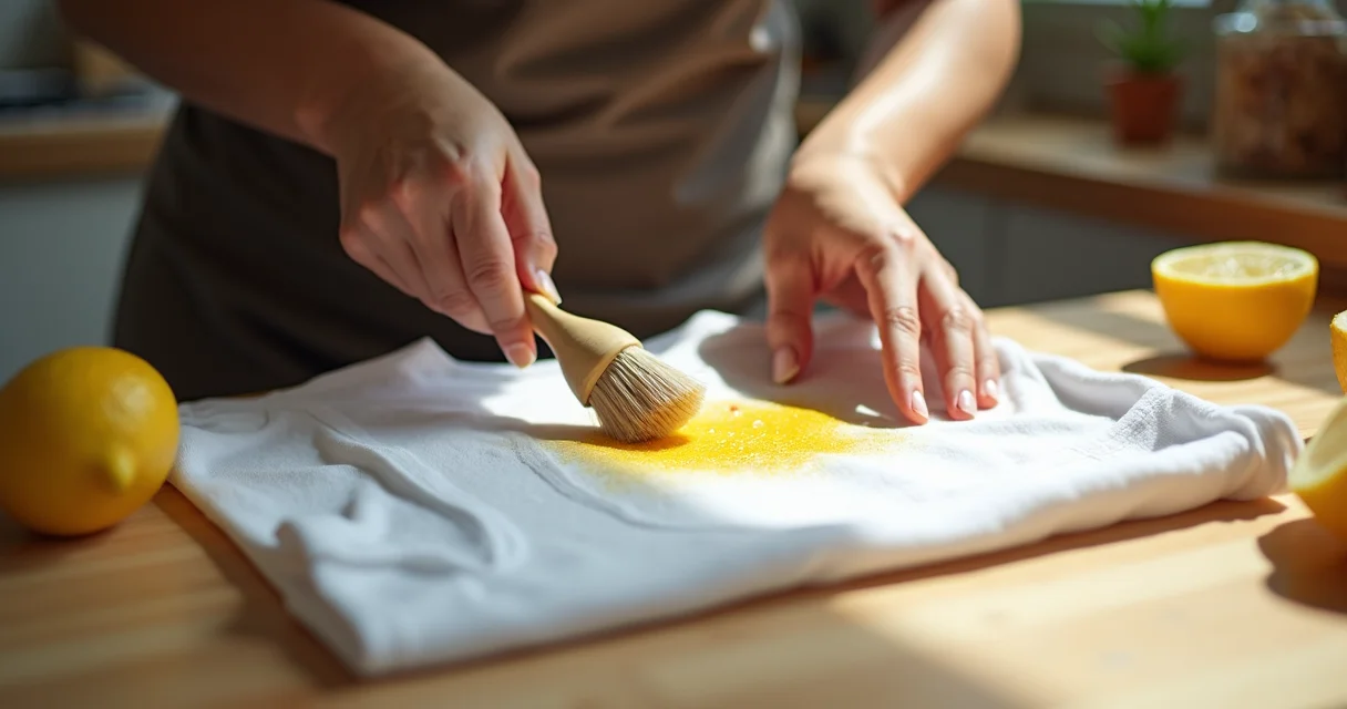 - Passo 3: Escolha a Solução Certa – Para manchas recentes, a dupla limão e sal é ótima. Esprema o suco de meio limão sobre a mancha, cubra com sal e deixe secar ao sol. O sol ajuda a clarear. Para jeans, o vinagre branco costuma funcionar bem. Já em roupas brancas, a água oxigenada Volume 40 é poderosa, mas use com cuidado. Para manchas mais leves, detergente e água morna podem resolver.