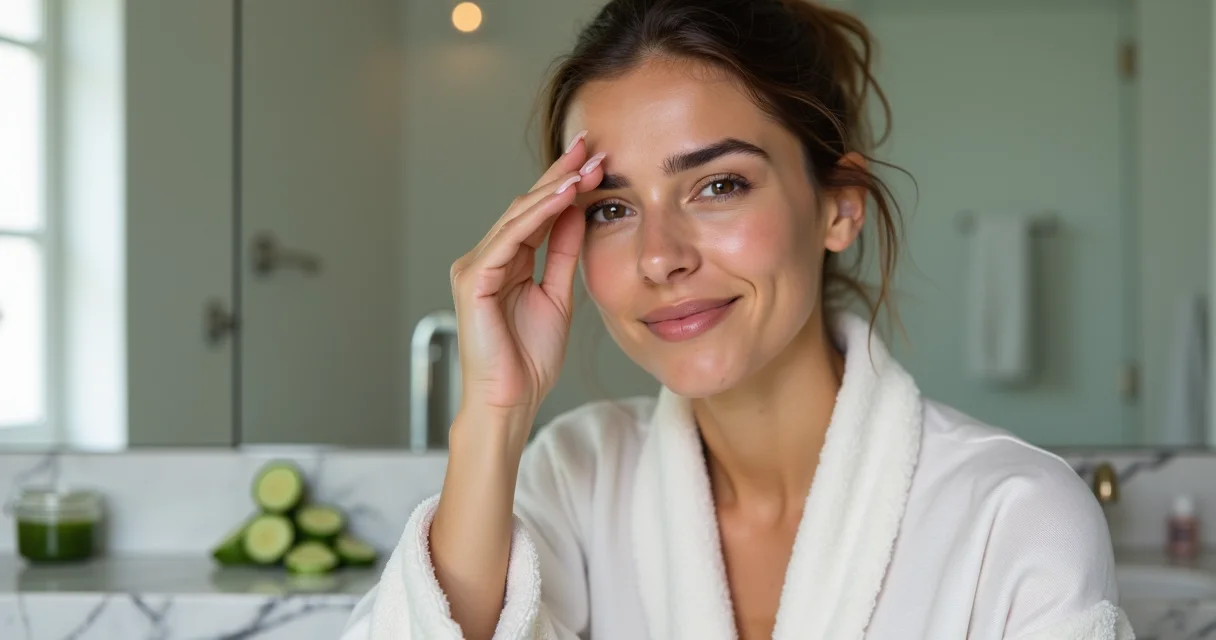 • Faça a ‘massagem dos 30 segundos’: Com as pontas dos dedos anelares (os mais suaves), pressione levemente o canto interno dos olhos. Deslize até as têmporas. Repita três vezes. Isso estimula a circulação linfática sem agredir a pele fina da região.
