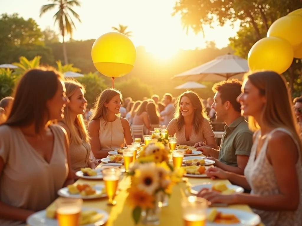 Pense na festa como um dia de sol radiante. Cada detalhe, da decoração ao cardápio, deve refletir essa energia vibrante. O objetivo é criar um ambiente acolhedor e cheio de vida.