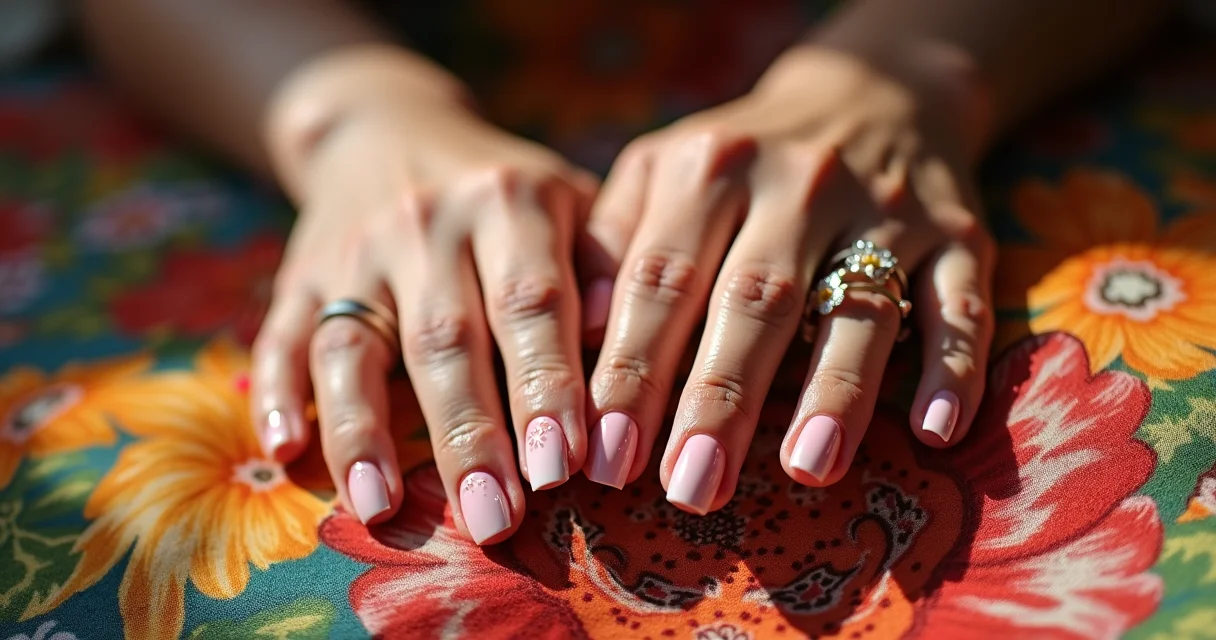 - Escolha os tons certos: Para mãos maduras, prefira rosas com subton quente (pêssego) e branco leitoso. Evite brancos puros, que podem parecer artificiais.