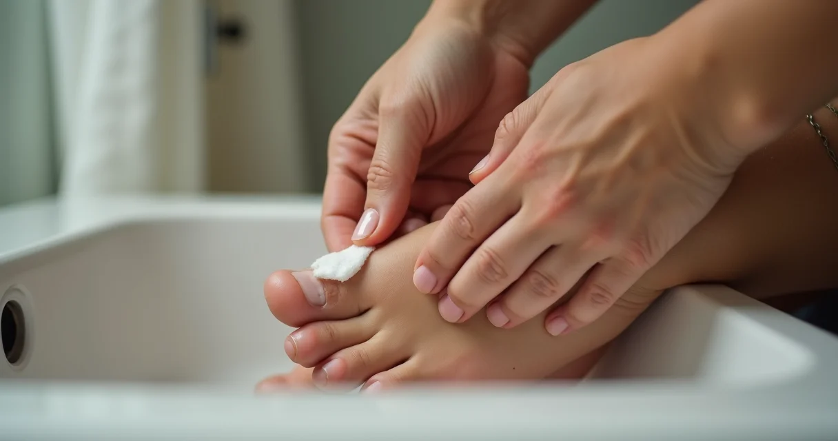 - Passo 1: Preparação da Área – Comece limpando bem o pé afetado com água e sabão. Seque delicadamente com uma toalha limpa. A higiene é seu primeiro escudo contra infecções.